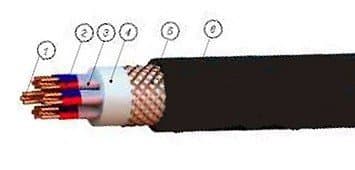 5. Сердечник - жилы с изоляционным покрытием, пары или тройки с экраном или без экрана повиты в сердечник.